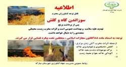 لذا خواهشمند است با توجه به اینکه سوزاندن بقایای گیاهی اراضی زراعی پس از برداشت محصول ممنوع بوده و متخلف محسوب می گردد،