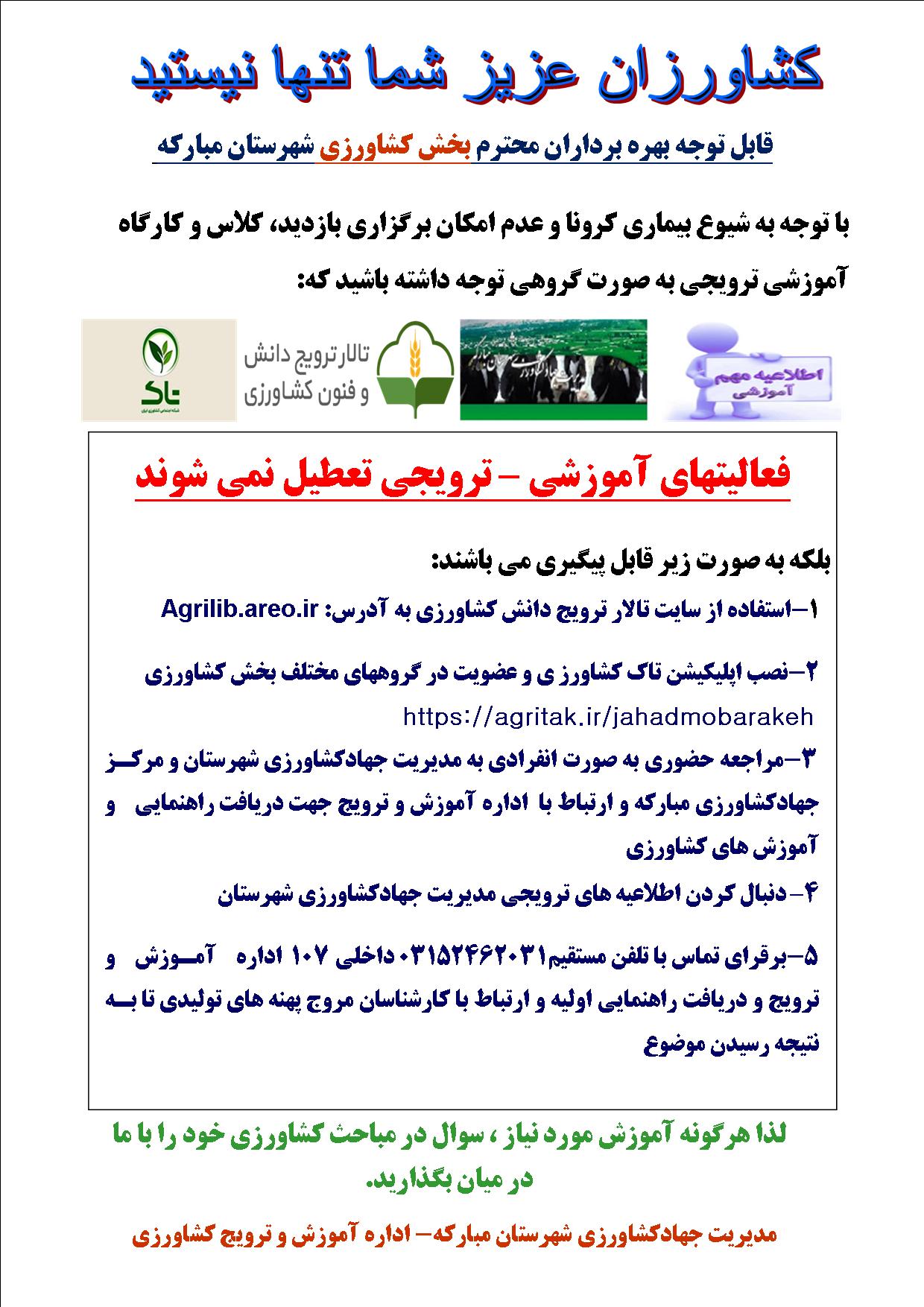 قابل توجه کشاورزان در خصوص کارگاه های آموزشی و ترویجی...