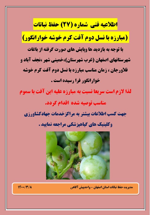 اطلاعیه -مبارزه با نسل دوم آفت کرم خوشه خوار انگور-